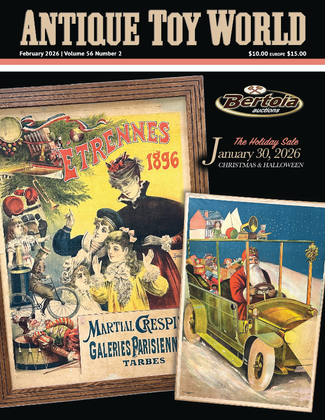 An overview of the contents of the new Antique Toy World Magazine February 2026