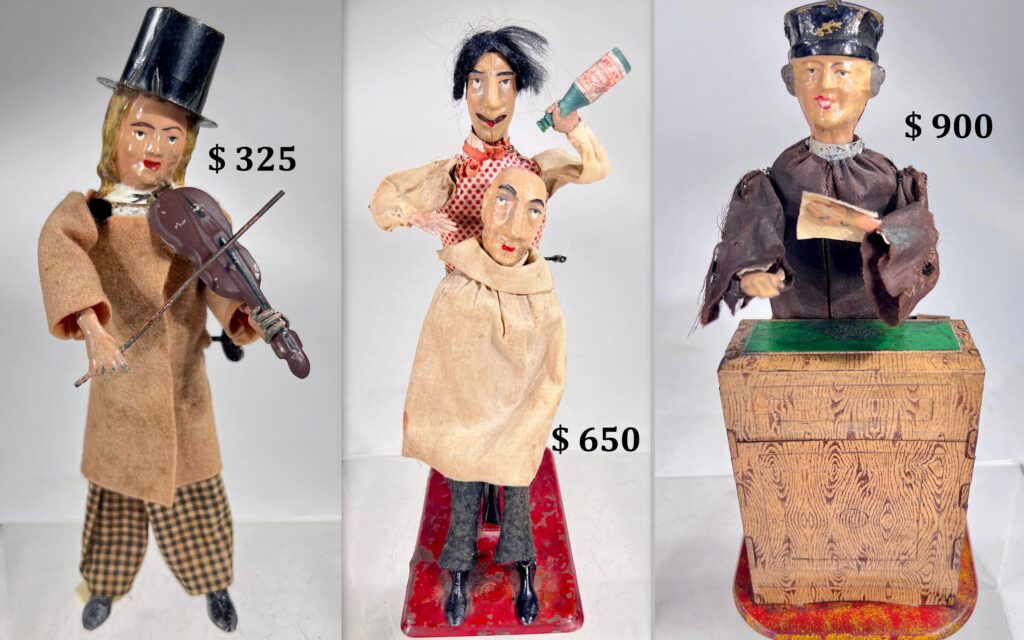 An exciting fall showcase featuring 90 Mechanical Banks, 250 Still Banks, 40 American Tin Toys, 30 lots of Cast Iron Toys, 40 Die-Cast Toys, 30 Cast Iron Doorstops, and 40 lots of European Windup Toys!